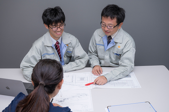 最短の時間で最良の図面を目指して設計しますが、困った時は先輩や後輩、仲間と意見を交わしながらベストな解決策を導き出します。