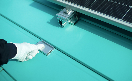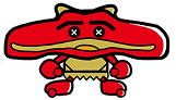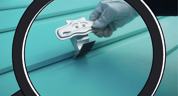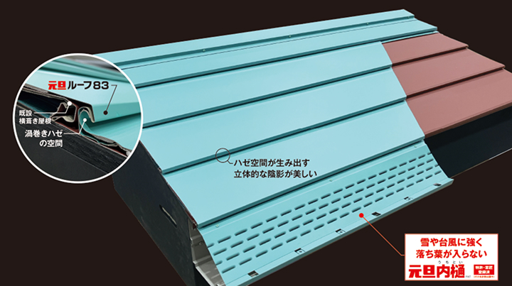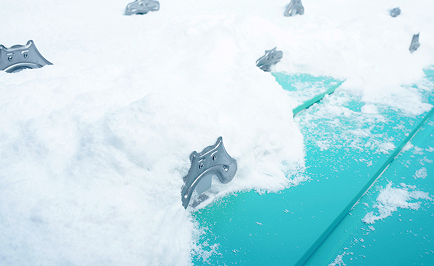 屋根から雪がまとまって落ちるのを防ぐ、魔除けの顔の雪止め。